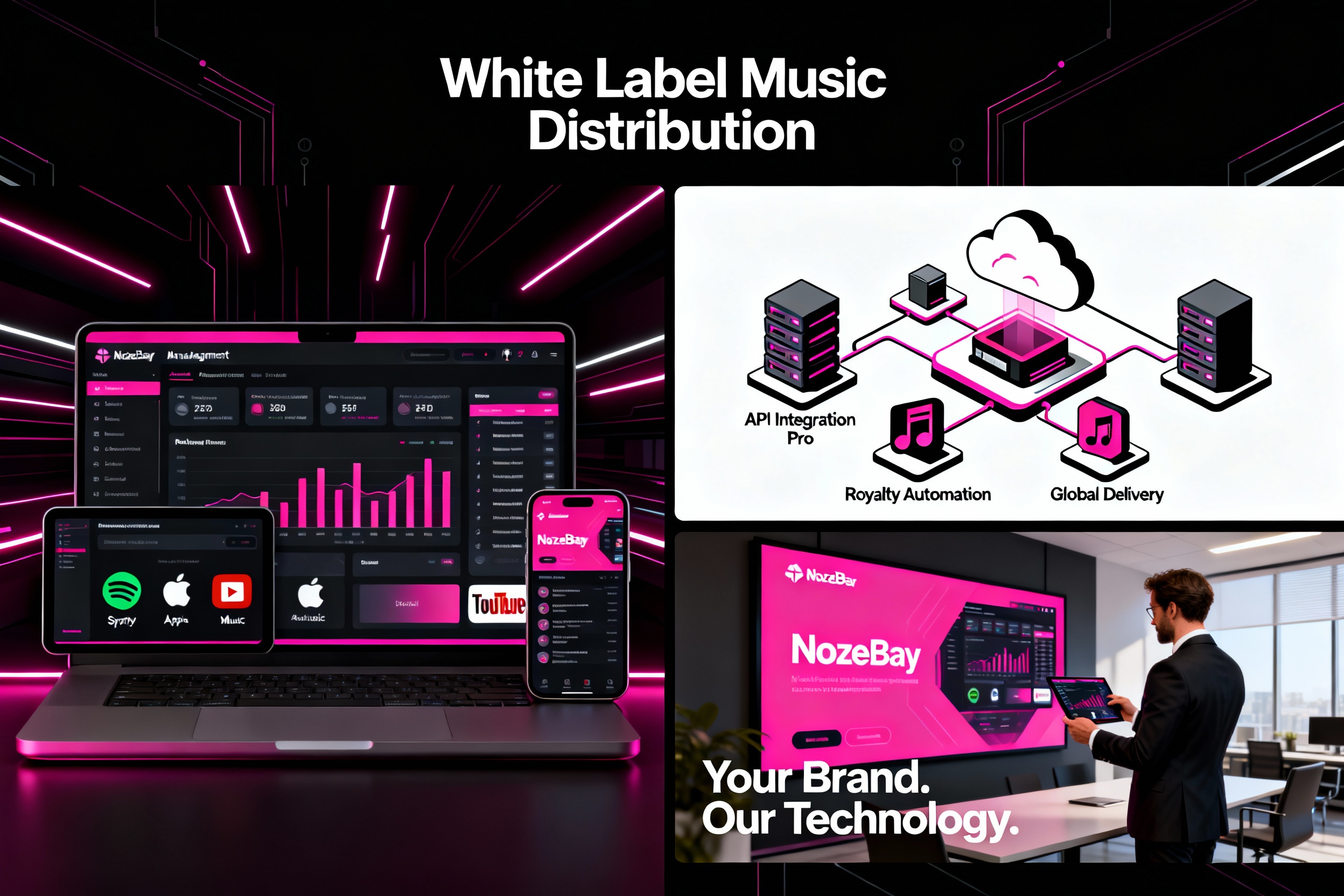 NoizeBay’s White Label Music Distribution Solutions are designed for music distributors, record labels, studios, and creative entrepreneurs who want to launch a professional digital music platform—fast, secure, and under their own brand. Built with next-gen tools, our system gives you full control over music distribution, publishing, royalties, and artist management—without writing a single line of code.